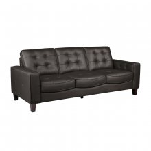 With its uplifting modern take on a retro design inspiration, the Renzo II Collection brings ample charm to your living room. Gorgeously attired in supple brown top-grain leather on its front and all areas that touch your skin and with high quality PVC faux leather-match on the back and sides, this sofa exemplifies quality workmanship. Rounded edges soften the lines of the track arms and the exposed wooden legs, while biscuit tufting and flange seams enhance the collection's tailored appearance. Crafted to playfully walk the line between vintage and contemporary, the Renzo II offers the best of both worlds to suit every taste.