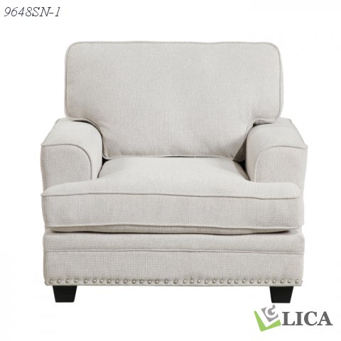 With a transitional design that is a complement to your home’s living room, the Bradford Collection utilizes classic lines, refined texture, and traditional accenting to achieve a universally appealing look. The chair is covered in sand-hued chenille fabric upholstery. Nail head trim accents the base rails, while profile-defining welting provides a tailored finish.