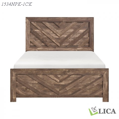 Modern lines and rustic styling are paired to create the look of the Corbin Collection. The 3D printed paper veneer’s texture is highlighted by a brown finish for a realistic wood look. A bold V-pattern defines the face of the California King panel headboard and footboard, further lending to the unfettered design of the collection. The bed’s construction allows for convenient packaging within one box.