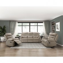 Enjoy luxurious comfort and effortless relaxation with this top grain leather match manual reclining sofa, designed for modern style, durability, and premium comfort. Featuring dual reclining seats with an easy-to-use pull-tab reclining mechanism, this sofa provides a smooth transition from upright to fully reclined for a personalized lounging experience. The high-back design, plush cushioning, and pillow-top armrests ensure maximum support and comfort, making it an ideal choice for living rooms, home theaters, or entertainment spaces. Upholstered in sleek top grain leather match, this recliner combines the luxurious look of genuine leather with enhanced durability, while the sturdy frame and reinforced reclining mechanism ensure long-lasting stability and performance. Whether you're watching TV, reading, or unwinding after a long day, this 3-seater reclining sofa offers the perfect blend of style, function, and superior comfort.