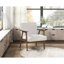 Add a touch of timeless elegance to your living space with this Mid-Century Modern Wood Arm Accent Chair. Featuring a classic design with clean lines and a warm walnut finish on the solid wood frame, this chair seamlessly blends vintage charm with contemporary style. The soft, textured linen fabric upholstery in a neutral tone complements any décor, while the generously cushioned seat and back provide exceptional comfort. Perfect for creating a cozy reading nook, adding a stylish accent to your living room, or enhancing your office space, this chair offers both aesthetic appeal and comfortable seating.