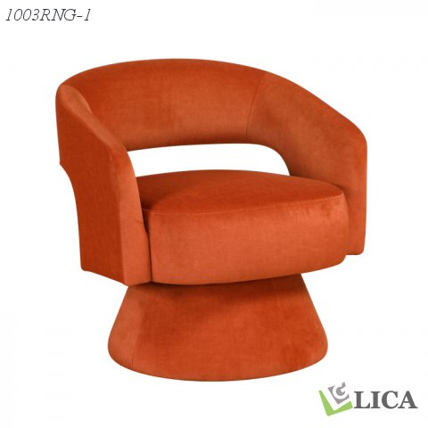 Add a touch of modern elegance and versatile functionality to your living space with this contemporary swivel barrel chair. Featuring a sleek, rounded silhouette and luxurious plush velvet upholstery in a sophisticated terracotta orange this chair effortlessly blends style and comfort. The smooth 360-degree swivel base allows for easy movement and conversation, making it a perfect addition to living rooms, bedrooms, offices, or reading nooks. The generously cushioned seat and back provide exceptional comfort, inviting you to relax and unwind. This chair is designed to be a statement piece, offering both aesthetic appeal and practical functionality to any modern home.