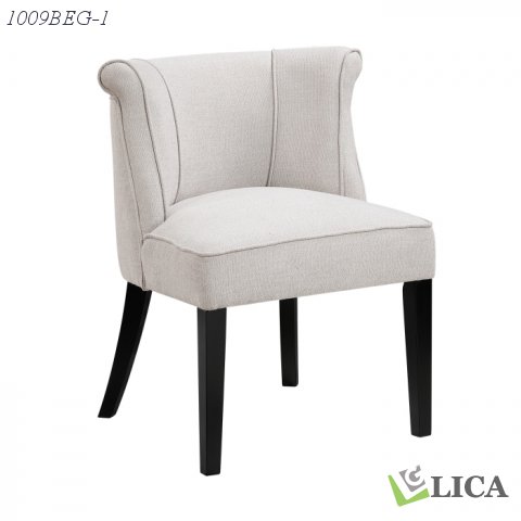 Elevate your home décor with this sophisticated upholstered accent chair, designed to provide both comfort and style. Featuring a gracefully curved back with subtle piping detail, this chair adds a touch of classic elegance to any room. The neutral-toned, textured fabric upholstery complements a variety of interior styles, while the generously padded seat ensures comfortable seating. Sturdy dark wood legs provide a stable and stylish foundation, making this accent chair a perfect addition to your living room, bedroom, dining area, or entryway. Enhance your space with this versatile and chic accent piece that seamlessly blends functionality with refined design.
