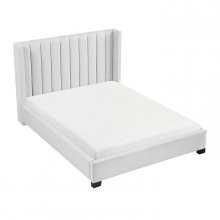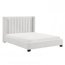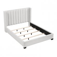 Transform your bedroom into a luxurious sanctuary with this stylish Queen Bed in a Box, featuring a sophisticated wingback headboard adorned with elegant channel stitching. Upholstered in a chic textured fabric and built with a sturdy plywood frame, this bed offers both timeless design and robust support for a restful night's sleep. Conveniently shipped in one box with all essential components including the headboard, footboard, slats, and rails, this bed provides a hassle-free solution to elevate your bedroom's aesthetic and comfort.