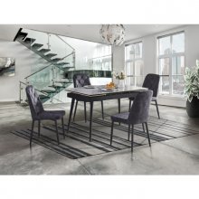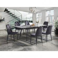 If you're on a quest to enhance your dining area with something both lightweight and glamorous, the Colette Collection may just be your Holy Grail. This stylish dining chair has all the hallmarks of on-trend elegance with a modern profile dressed in timeless dark grey velvet upholstery. The seat cushion is well-padded to provide the comfort you deserve, and the gently contoured back offers both additional support and an eye-catching design thanks to diamond-quilted stitch accenting. Black metal angled legs are the final industrial-chic twist needed to keep the design feeling contemporary. Whether accomodating intimate meals or larger gatherings, the Colette enhances your dining room with enviably unqiue charm.