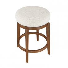 This stylish swivel counter height stool, crafted with a solid wood frame and a warm brown finish, offers a perfect blend of modern design and comfortable functionality for your kitchen island or bar area. Its plush boucle fabric upholstered seat provides an inviting and cozy seating experience, while the smooth 360-degree swivel allows for effortless movement and conversation. The sturdy construction ensures lasting durability, making it an ideal choice for both casual dining and entertaining. Assembly is required to bring this versatile and charming stool into your home.