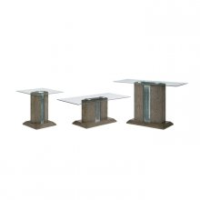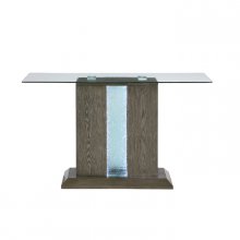 Light up your living room with the contemporary styling of the Spectra Sofa Table - literally! Combining the classic look of a grey wood finish with a modern profile crowned by a clear tempered glass top, the Spectra brings more than just good taste to your home. The pedestal base features sophisticated embedded etched glass panels that showcase 3-way adjustable cool white LED lighting, all controlled by a touch of the button located at the table's side. Create a unique ambience while entertaining or simply ensure your living room doesn't get too dark; either way, the Spectra will enhance your décor enormously.