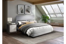 Dreaming of a bed that mimics the pillowy softness of a cloud? If so, the Calais Collection is your perfect match. The upholstered headboard and footboard of this Queen Bed are accented by horizontal channel tufting to bring a bit of visual interest to the otherwise unfettered minimalist design, complemented by soft textured light grey fabric that contributes to the cloud-like environment you crave. The padded headboard gently bolsters you, allowing you to comfortably sit up and read or drift into a deep sleep. Standing atop a solid wood base with a black finish, the convenient platform design supports you without the need for a box-spring or foundation. With its unassuming charm, the Calais brings a sense of calm to your room – let it turn every night into a restful retreat so every morning is a good one.