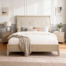 Upgrade your bedroom with the perfect blend of rustic charm and modern elegance with this bed. Crafted from a combination of Mindy veneer, wood, and engineered wood, the frame boasts a beautiful beige finish that creates a light and airy feel. The headboard is the centerpiece, featuring button-tufted beige faux leather upholstery that adds a touch of classic sophistication. The clean lines and versatile color palette allow this bed to seamlessly integrate with a variety of decor styles, from farmhouse to contemporary. This set includes the headboard, footboard, and rails, providing a sturdy and stylish foundation for your mattress and box spring.