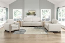 Discover the modern comfort collection, where sophisticated style meets everyday practicality. Each piece, from our inviting chair to our spacious sofa and cozy loveseat, features clean lines, exposed solid wood framing, and comfortable textured fabric. Built with durable solid wood and plywood frames, high-density foam over pocket coils, and elegant natural-finished legs, these pieces offer lasting durability and a plush seating experience. Enjoy the added convenience of reversible back cushions and removable zippered covers for easy maintenance and a consistently fresh look. Perfect for any contemporary living space.