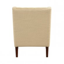 Upgrade your reading nook or living room with this classic wingback accent chair, featuring elegant button-tufted details and a timeless design. Built on a durable plywood frame with a robust 300lbs weight capacity, this chair ensures lasting stability. Experience superior comfort thanks to the plush, high-density foam padding over pocket coils and the soft textured fabric upholstery. Finished with rich solid wood legs in a brown finish, this wingback chair, featuring an attached back and reversible seat cushion, is the perfect blend of sophisticated style and luxurious seating comfort for any home.