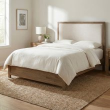 Transform your bedroom into a serene retreat with this sophisticated blend of rustic charm and modern convenience. Crafted from beautiful French oak veneer, wood and engineered wood, this bed features a warm brown finish that highlights natural grain patterns. The light gray textured fabric upholstered headboard offers a soft, comfortable backdrop for lounging, while built-in USB-A and USB-C ports keep your devices powered overnight. It is the perfect centerpiece for those seeking a stylish, tech-friendly sleep sanctuary.