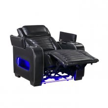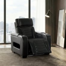 Experience the pinnacle of relaxation with this state-of-the-art power reclining theater chair, designed to bring a premium cinema experience to your living room. Wrapped in top-grain leather where it touches your body, this seat features advanced back air massage and heated seating for therapeutic comfort. The space-saving wall-hugger design and integrated LED ambient lighting create a modern aesthetic. With built-in USB charging ports and dual storage compartments, all your entertainment essentials are always within reach.