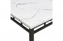 Smartly designed for your modest dining space, the Olney Collection provides a stylish and functional surface for your mealtime needs. Conveniently packaged in one box, this casual yet elegant dinette features a black metal table base that rises to support a contrasting white faux marble tabletop shot through with eye-catching veining. Vertical cutout accents grace the table apron and the top rails of the coordinating chairs. Padded for comfort and sporting white faux leather on the back and seat cushions, the chairs complement the table perfectly, creating an ideal compact dinette grouping for your contemporary condo or loft.