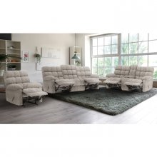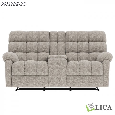 Experience ultimate comfort with the Lancaster Collection’s plush and cozy design. This double reclining console loveseat is crafted with supreme relaxation in mind, including soft beige chenille fabric upholstery and plump biscuit-tufted accenting. An easy-to-use lever reclining mechanism at either end lets you stretch out with a simple pull, giving you the opportunity to find your perfect lounging position. For added convenience, there is a central console with storage and two cupholders so you can enjoy your drinks during relaxation time. With its generously padded back and seat cushions and pillow-style arms, this loveseat is the perfect addition to any living space so you can unwind after a long day. Also available in grey, the Lancaster transforms any room into a relaxing sanctuary.
