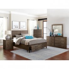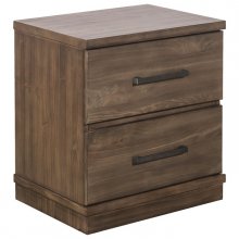Casual contemporary styling is achieved in the design of the Bracco Collection. Clean line paneling of the nightstand lends to the modern look, while the solid pine wood with a brown finish hints to a rustic aesthetic. Antique bronze tone horizontal hardware creates distinct contrast to the finish of the collection.