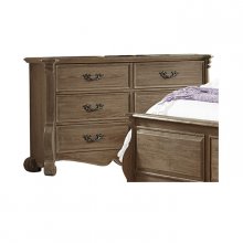 With bold curves that are softened with elegant accentuation, the look of the Chrysanthe Collection is nothing short of utterly feminine. Clipped corner case tops are supported by dramatically curved canted pilasters that give way to the scroll-accented base moldings of the nightstand. Drawer fronts are punctuated by decorative metal hardware. A water based finish highlights the oak veneers over oak solids.