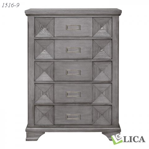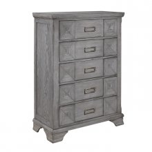 Modern accent is combined with rustic aesthetic to create the dramatic look of the Mayodan Collection. An antique gray finish is utilized to highlight the ash veneer, creating distinct character to the group’s design. Polished chrome hardware fronts the chest’s drawers while the x-pattern that fronts the unit lends bold accent.
