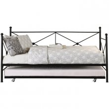The design of the Jones Collection utilizes accents such as finials, and medallion connections to provide a traditional look to this functional daybed. The accompanied metal trundle provides additional sleep space in times of need.