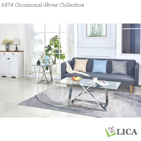 Create a statement in your living room with the striking lines of the Verne collection. The stainless-steel base extends itself up towards opposing corners before coming to rest at the table’s center, supporting the gleaming tempered glass tabletop with effortless ease while creating a bold asymmetrical crisscross effect. The polished chrome finish only adds to the impression of architectural modernity.