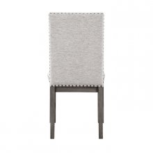 At the intersection of modern and rustic design, the Gresham Collection brings you to a full stop. Clean lines are paired with the natural beauty of acacia veneer, while a gray finish lends neutral versatility to the décor of your casual dining room. The rustic look of the plank tabletop is interrupted by the modern lines of the table apron’s angled edge. Coordinating side chairs feature wood legs and gray fabric upholstered seats, with profile-defining nailhead trim. The open display shelving of the server further lends to the modern look of the collection while providing drawer storage for your tabletop décor.