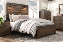 In a blend of transitional lines, industrial accenting and rustic textures, the design of the Conway Collection emerges, it’s bold look a complement to your home’s unique look. The antique brown finish over birch veneer of the rough-hewn boards, that comprise the slats of the collection, are worked into the design by lending to the profile and uniform horizontal lines of the bed. Mounted on the upper slat of the queen panel headboard are the LED lights with black and brass finished lampshades, each providing additional light sources within your bedroom and further lending to the rusticated aesthetic of the collection.
