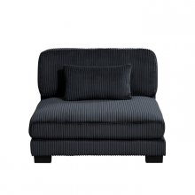 Configurable to your available space, the Traverse Collection allows for the addition and detachment of pieces for a customized seating experience. The 6-piece sectional configuration consists of two corner units paired with two armless chairs, and two ottoman. The plush black corduroy fabric upholstery creates a plush expanse for a soft touch experience.