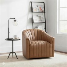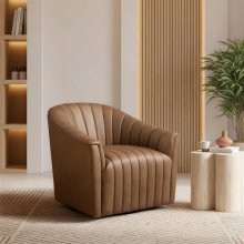 Upgrade your living room with this luxurious swivel chair, blending modern comfort with classic design. Upholstered in premium top grain leather where you touch (with faux leather elsewhere), it is available in brown, camel, or black. The chair features a smooth 360-degree swivel for effortless movement. With its chic silhouette, this swivel chair is a stylish and functional addition, offering an elegant seating solution.