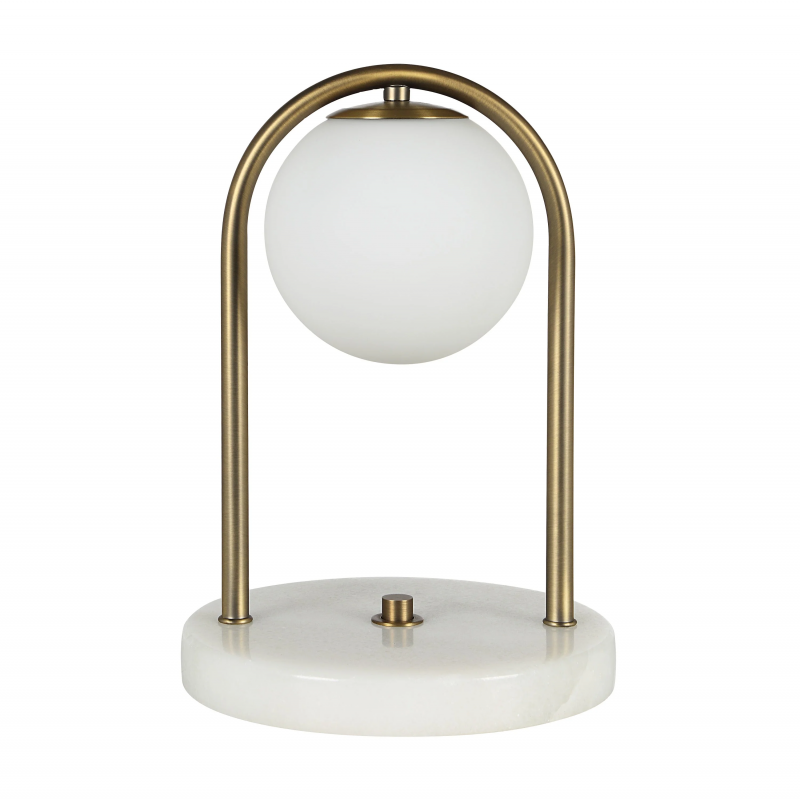 From the Arren Williams collection, the Barca table lamp embodies sleek, contemporary design. A polished marble base supports an etched white globe, while dark brushed brass accents add subtle sophistication. Perfect as a standalone piece on an end table or paired on a mantle or credenza, it combines modern artistry with practical, stylish illumination. InStock:0 Retail CAD:$0