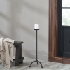 Create a warm and welcoming vibe in any interior with this artfully designed floor candle holder. Crafted with a matte black-painted finish, this cast aluminum piece has a hand-forged look and feel that delivers style and function to your transitional decorating scheme. Simply add the candle of your choice for an instantly cozy glow. InStock:0 Retail CAD:$0