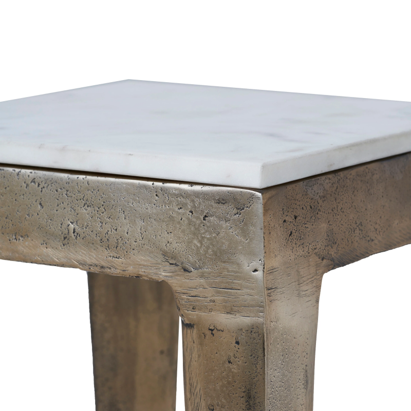 Introducing the Abby Side Table in Antique Brass - a durable and elegant addition to your space. Made from strong cast aluminum, this table can handle your items with ease. Its shiny antique brass finish not only looks beautiful but also keeps it looking great despite everyday use. Designed to fit in with any decor, this side table adds a touch of sophistication wherever you place it. Whether you need a spot for your essentials or want to add some style to a corner, the Abby Side Table brings both quality and charm to your home effortlessly. InStock:0 Retail CAD:$0