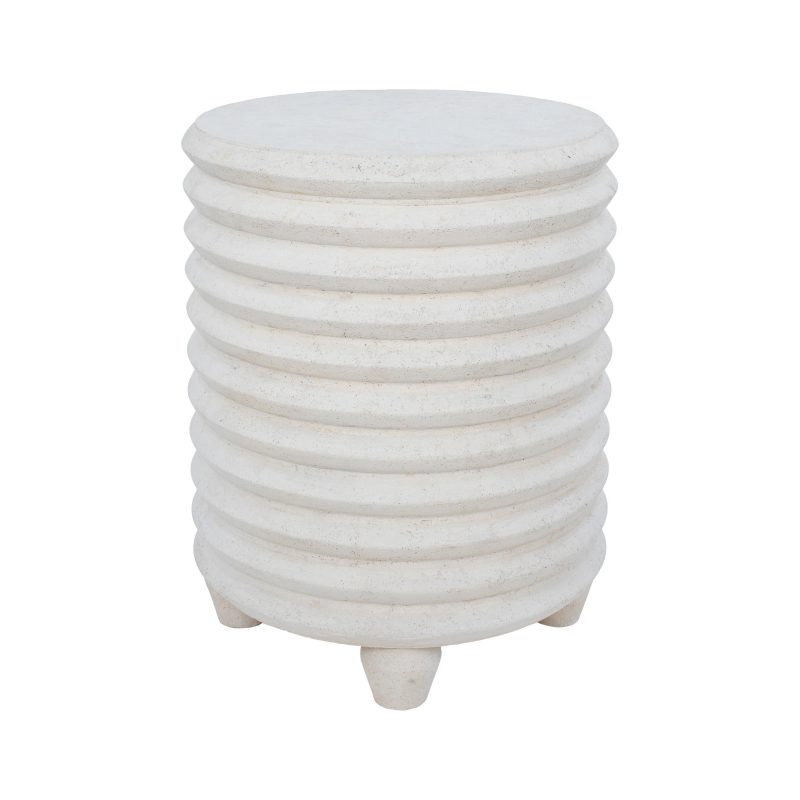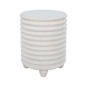 A juxtaposition of soft and strong rests within this side table design. The stone blend structure makes a solid unwavering impact as the swirling details add a touch of whimsy. Placed within the living room interior or the garden space, its unique structure offers utility as resting place and style support. Product Details: