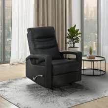 From movie nights to lazy afternoons, the Wynn Collection is built for comfort and convenience. Offered in a classic black finish, all seating surfaces that you touch are dressed in 100% genuine top-grain leather/leather-match for elegance and durability. The sleek, tailored profile features stitched detailing and open-frame track arms for a light, contemporary look, but don’t think sleek means flat - high-density foam cushioning over pocket springs offers plush and supportive no-sag seat construction that you can hardly believe! Pull on the sleek chrome-finished lever for effortless reclining, and let the soothing back-and-forth motion of the glider lull you into a blissful zen moment. With multiple colours available to suit your tastes, the Wynn brings chic design and cozy comfort together in one effortless package.