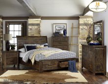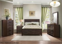 The Lonan Collection. With a hint of weathering so popular in industrial styling, the Lonan Collection will fit into the rustic contemporary aesthetic that you look to achieve in your bedroom. Melamine laminate mimics the look of sun-bleached wood with a darker under-hue providing subtle contrast to the design of the group, with dark finished metal handles providing additional contrast. The collection is offered in twin, full, queen, eastern king and California king for perfect placement in your home.