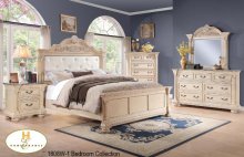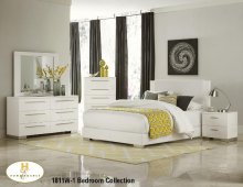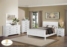 With each curve comes a new twist--satin nickel hardware accents the grey finish, bow-front case pieces feature ball bearing drawer glides and compliment the padded sleigh headboard and footboard.