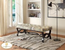 The Marlena Collection. Offered in three prints - natural linen, grey medallion and purple medallion - the sophisticated design of this collection features an elegantly appointed button-tufting that is further accented by the gracefully intertwined espresso finished base. This decorative bench is sure to compliment your personal style.