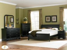 The artistry of metal-work and cut crystal are featured in this traditional bedroom. Every piece reflects the architectural elements of crown tops over fluted pilasters, all resting on bun feet. An ornamental filigree in the arched headboard is complimented b bale d handles with crystal-like centers and knobs. Finished in a dark mahogany stain, this bedroom has a timeless quality.