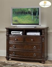 The Hillcrest Manor Collection. Acanthus leaf carvings along with egg and dart molding, beaded molding, pull and knob antiqued hardware, and a rich cherry finish further the traditional style. Full extension darwer glides.