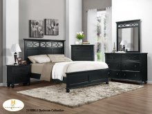 The Sanibel Collection. Diamond overlay curves throughout the entire collection-capping the headboard then carrying on to the gracefully bowed case pieces. The versatility of the design lends to the perfect placement in a master suite, guest or child's bedroom. Black finish