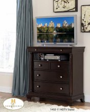 The Aris Collection. Large bun feet serve to support the massive yet elegantly simple case pieces, while the warm brown cherry finish on select hardwoods and veneers complete the overall look.