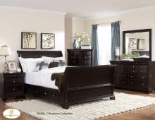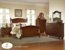 The Inglewood Collection. The boldly designed lines of the traditional sleigh bed are accented with convenient under bed storage, while the breakfront posts of the panel bed lend an air of casual elegance. Deep cherry finish and features two mirror options to complement each bed-swivel or rectangular stationary.