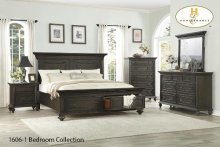 The Hillridge Collection. Geometric molding provides a distinct contrast to the traditionally framed case goods while substantially sized turned legs enhance the look of the oversized case pieces and mansion headboard. Providing storage space beyond the traditional case pieces are the dual drawers of the footboard and the hidden drawer located within the nightstand. The oak veneer, over pine solids, is finished in grey for a timeless look.