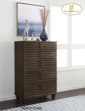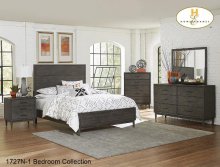 The Ridgewood Collection. The solid poplar raised slats that grace every piece of this collection are interrupted by the inset vertical metal headboard accent and drawer pulls. Oak veneer is utilized and highlighted by a rustic burnished oak finish.