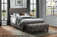 The Elista Collection. Modern styling combined with the look of tailored menswear creates a uniquely appointed offering for your bedroom in the Elista Collection. Dark gray tweed fabric is interwoven to create eye-catching drama on the headboard and footboard. The collection also features a coordinating bench and stool.