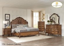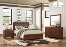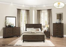 The Raku Collection. Classic elements of understated traditional design combined with a barn wood grey finish over oak veneer, high polish knob hardware and the light neutral tone of the fabric covered headboard and footboard, blend effortlessly to create a sophisticated modern traditional look for your bedroom.