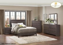 The Lavina Collection. A weathered grey finish has been utilized to enhance the wood veneer of each piece. Creating a focal design point is the finger pulls that replace the need for hardware on the sleekly designed case pieces - a design feature that carry onto the panel headboard.