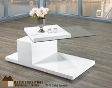 Style meets practicality in this white lacquer finished lift-top cocktail table. Made of chrome-finished metal frame and a multi-use lacquer top, it adjusts to the perfect height for eating and drinking. The accompanying end table accentuates the clean, modern look.