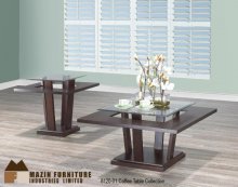 Strong geometric features influence this occasional table collection. Th offset glass creates the illusion of floating glass tops but still leaving enough functional space for the wood-framed edges. Finished in a dramatic urban espresso.