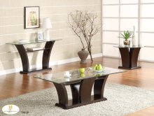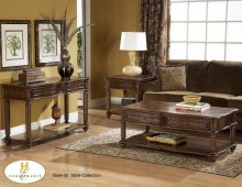 The Schiffer Collection. Square medallions punctuate the tops of each subtly curved leg. Display shelving is featured on each piece, while cocktail table's prominent glass insert makes a unique design statement.