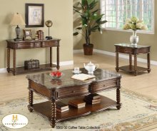 The Lockwood Collection. Serpentine lines form the boxed table tops: each crowned with elegant marble and edged with short grain mahogany border. Furthermore, wheat sheaf carved accents top spiral turned legs while display shelving is supported by traditional bun feet.